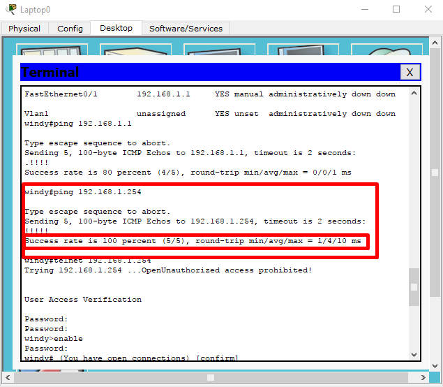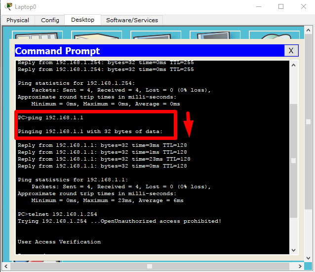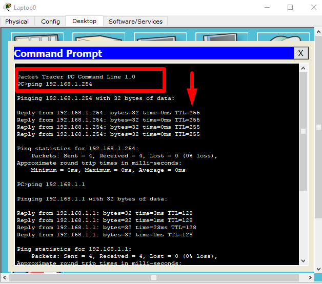 lalu lakukan lah tes "ping 192.168 1. 1."