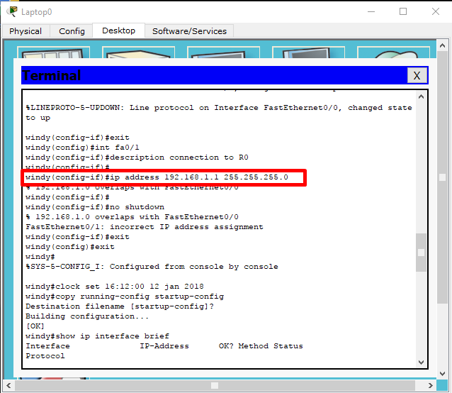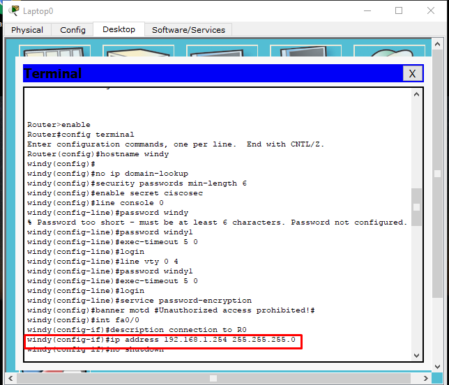 tulis ip addresnya"ip address 152.168.1 254.255.255.255.0
