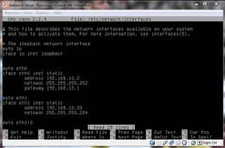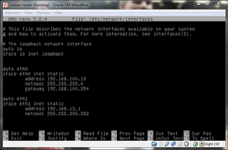 * Sekarang aturlah IP Address pada Komputer Debian Router (Komputer Virtual 1), misal :
